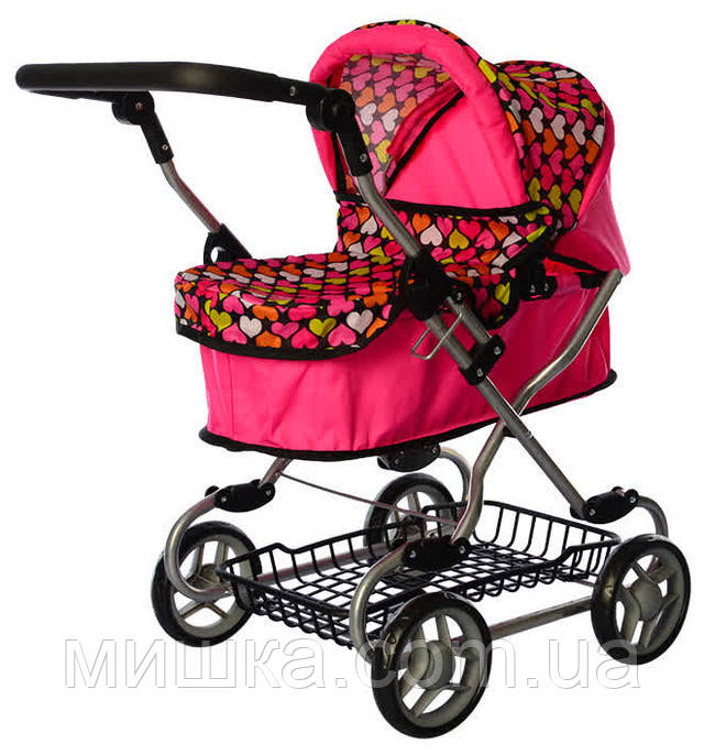 Коляска прогулянкова для ляльки, металева, висота до ручки — max 75 см, MELOGO 9680W, малинова