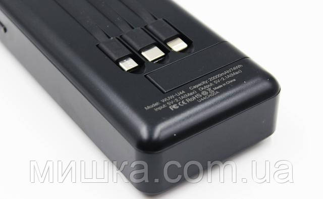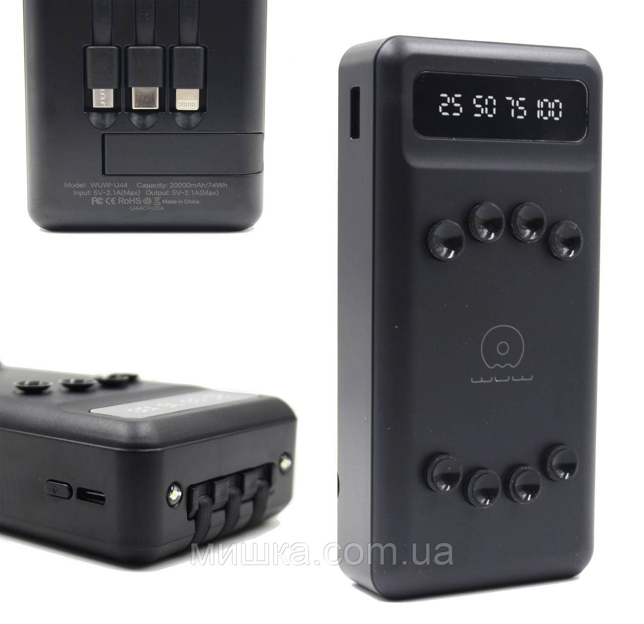 Power Bank 20000 mAh/74 Wh WUW U44, вбуд. кабелі для зарядки, ліхтарик, повербанк, чорний