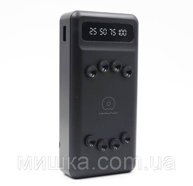 Power Bank 20000 mAh WUW U44, вбуд. кабелі для зарядки, ліхтарик, повербанк, чорний, 8 зручних присосок для кріплення до столу або телефону