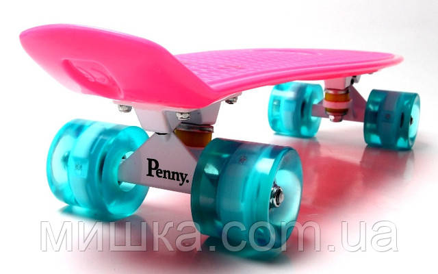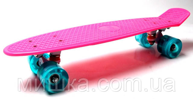 Пенниборд Pink, дека 22" Logo. Сяйливі бірюзові колеса!